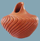 ALVINA YEPA is very successful young potter from the Jemez Pueblo. She attributes her success in the art of making beautiful pots to the teachings of her mother, Nonche, whose name means pottery. Over the years she observed her mother's techniques so intently that when she began crafting her own pottery she experienced relatively few problems. One notices how the angular lines on her red carved ware give it a fluid and graceful appearance. Alvina has won multiple awards including two First Place ribbons at Santa Fe Indian Markets. |