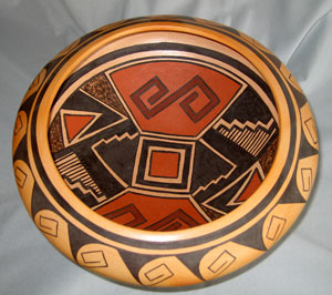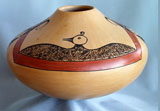 | Dee Setalla is the son of Justin and Pauline Setalla and he is also related to Joy Navasie ( Frog Woman ). Both of these famous potters greatly influenced Dee in both his technique and style. He took "First Place" at the 1997 Indian Market in Santa Fe and received an "Honorable Mention" in 1998 at Santa Fe as well as at the Museum of Northern Arizona Hopi Show. In 1999 he also won an "Honorable Mention" at the Heritage Marketplace at the Museum of Northern Arizona. |