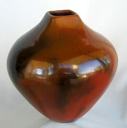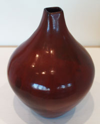 warm pots after firing and burnishes that down to a distinctive low sheen. Usually her