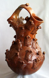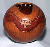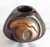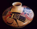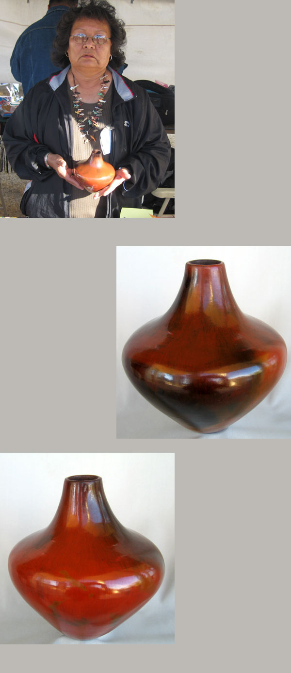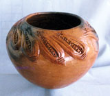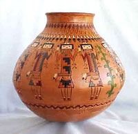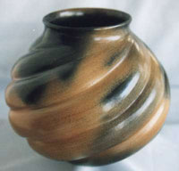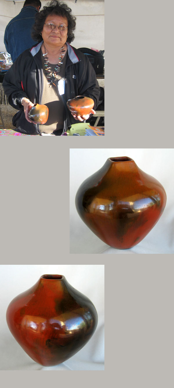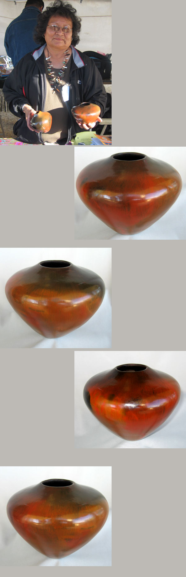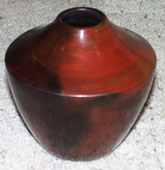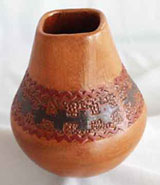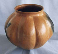 | Samuel Manymules has been making pottery in the traditional Navajo method for the last 12 years. He was making jewelry when he first starting examining pot shard in the desert and decided to try pottery. Samuel is self taught and has perfected his thin wall and high temperature firing to achieve an esthetic pleasing effect. He took best of show in the pottery class at the HEARD INDIAN MARKET in 2002 |
