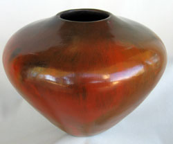 the pots from the juniper wood combine to produce the red-orange-purple-brown-black